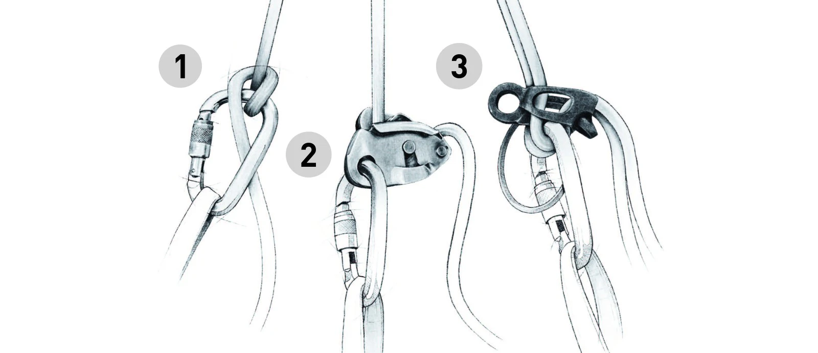 Le fonctionnement des dispositifs d’assurages est simple, mais génial : il s’agit d’amplifier le frottement de la corde. Le fait d’augmenter le frottement réduit d’autant la force que doit fournir la personne qui assure pour retenir la chute. On peut distinguer quatre types de dispositifs d’assurage.