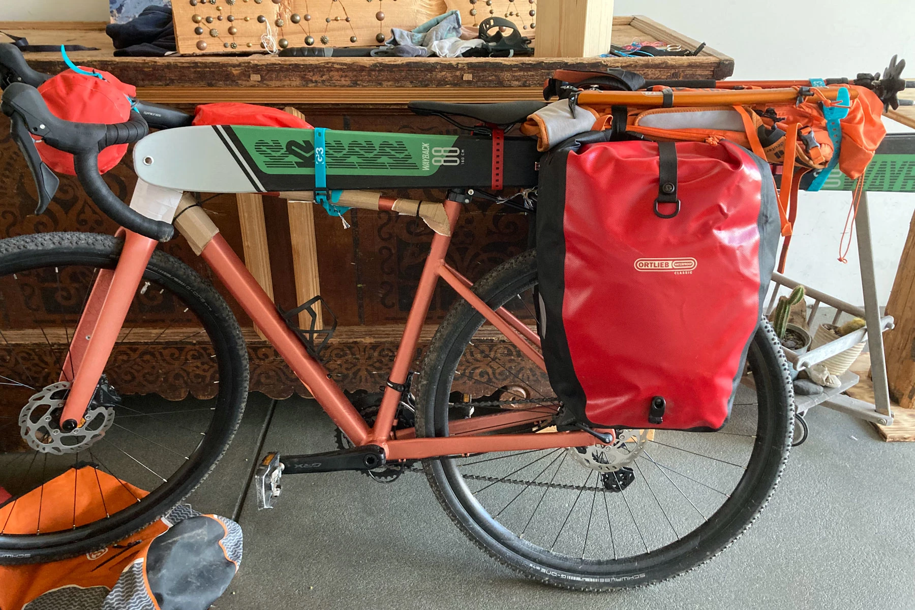 Après avoir rassemblé le matériel nécessaire, j'ai décidé d'attacher le vélo que j'avais acheté. Mais ce n'était pas si simple de tout attacher de manière à pouvoir rouler sans problème. Lorsque tout le matériel fut enfin attaché, je me suis rendu compte que rouler avec ce vélo lourd était très fatigant. Mais avec un peu d'entraînement, je me suis senti de mieux en mieux et j'ai fait un tour d'entraînement jusqu'à Kandersteg.