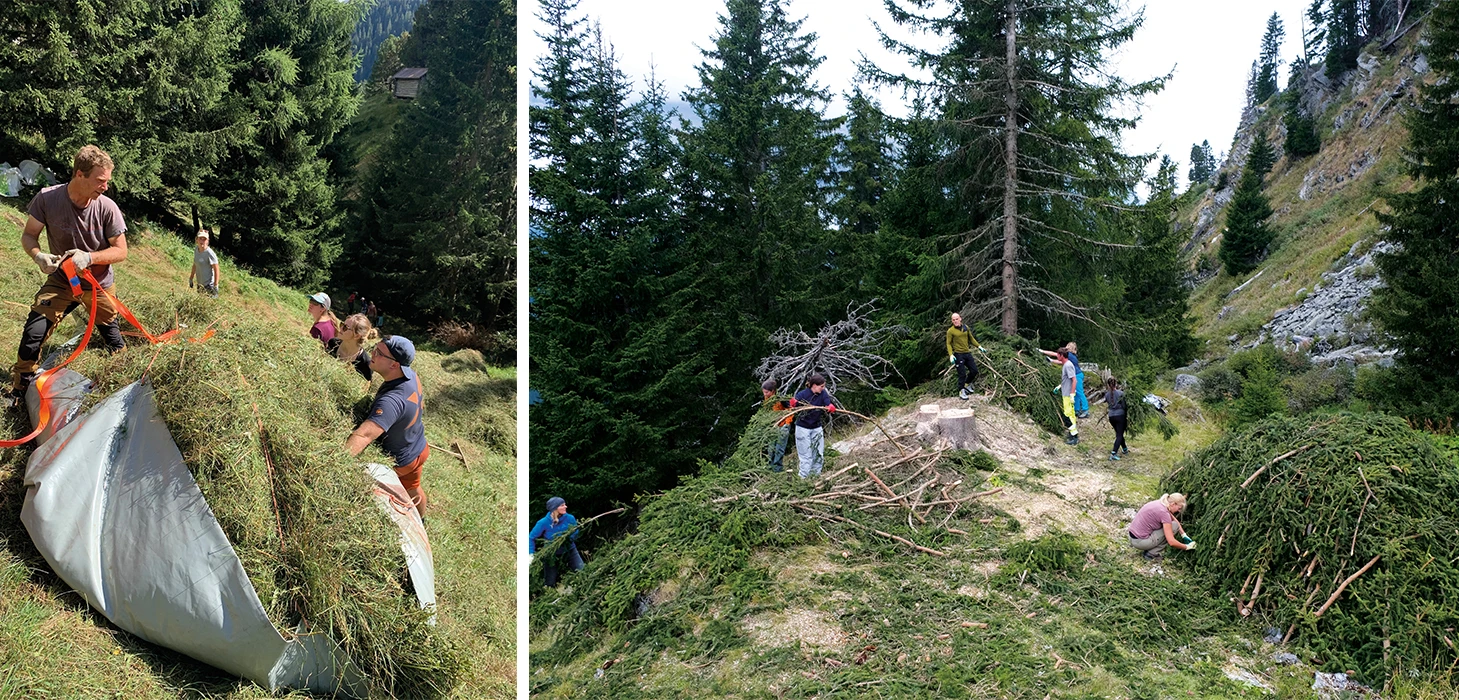 Le Val Ferrera se trouve dans le parc naturel Beverin, qui s'étend sur 412 km² ;. Cela semble grand – ; mais selon l'Office fédéral de l'environnement, environ 90 pour cent des précieux biotopes (alpins) de prairie ont disparu au cours des 60 dernières années. Dans le parc naturel, on veille à la biodiversité et à l'attractivité du paysage en favorisant les habitats précieux dans le paysage rural traditionnel. Les grandes prairies et pâturages secs d'un seul tenant et leur mode d'exploitation traditionnel méritent une mention particulière. Ils constituent un type d'habitat important, si ce n'est le plus important, dans le parc naturel Beverin. En collaboration avec les agriculteurs, nous avons fauché la prairie de montagne escarpée. Le foin des prairies de montagne a été remonté à l'aide d'une grande bâche et d'un câble. Le bois a lui aussi été remué «pour en faire du bois äde la paille » ;. Un grand tas de Äbranches et de sarments offrira à l'avenir un refuge pour les rongeurs et les insectes alpins.