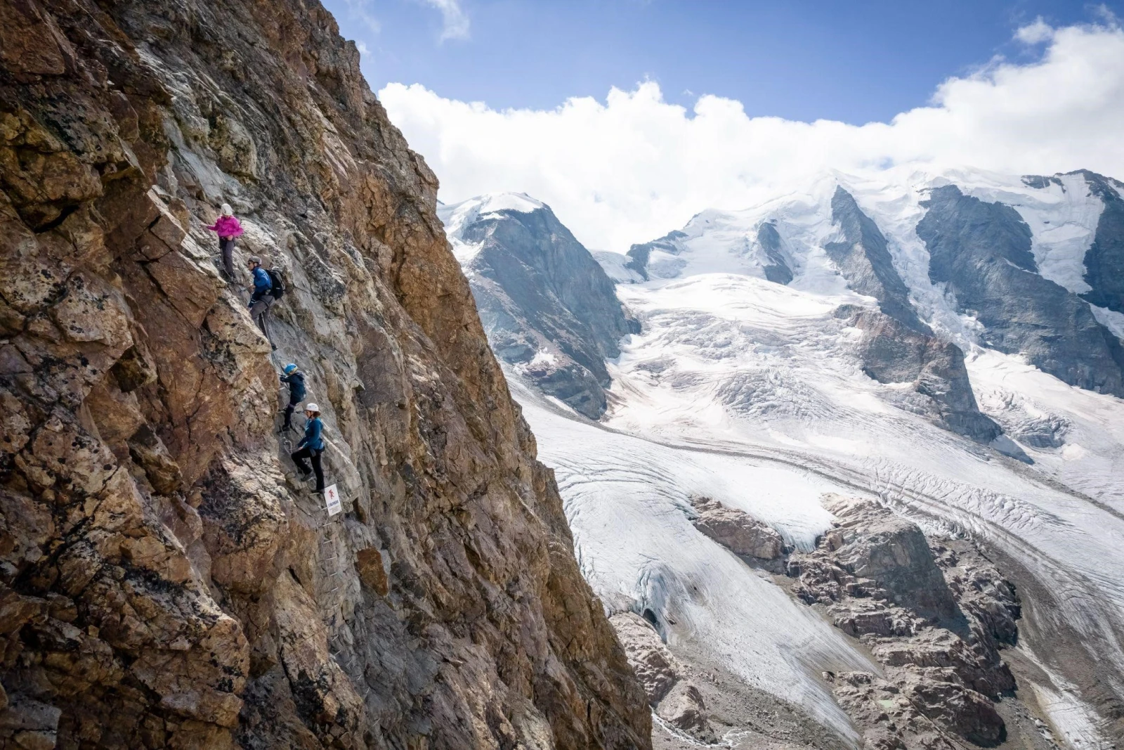 Sur cet itinéraire passionnant et pourtant assez exigeant, vous pourrezö ;Vous pourrez observer comment les deux glaciers Morteratsch et Pers se rejoignent et même entendre, pendant le parcours, comment le précieux élixir de vie s'écoule sous la glace. Même si tu ne veux pas t'attaquer à la via ferrata, tu peux prendre le téléphérique depuis la station Bernina Diavolezza et profiter d'un magnifique panorama.