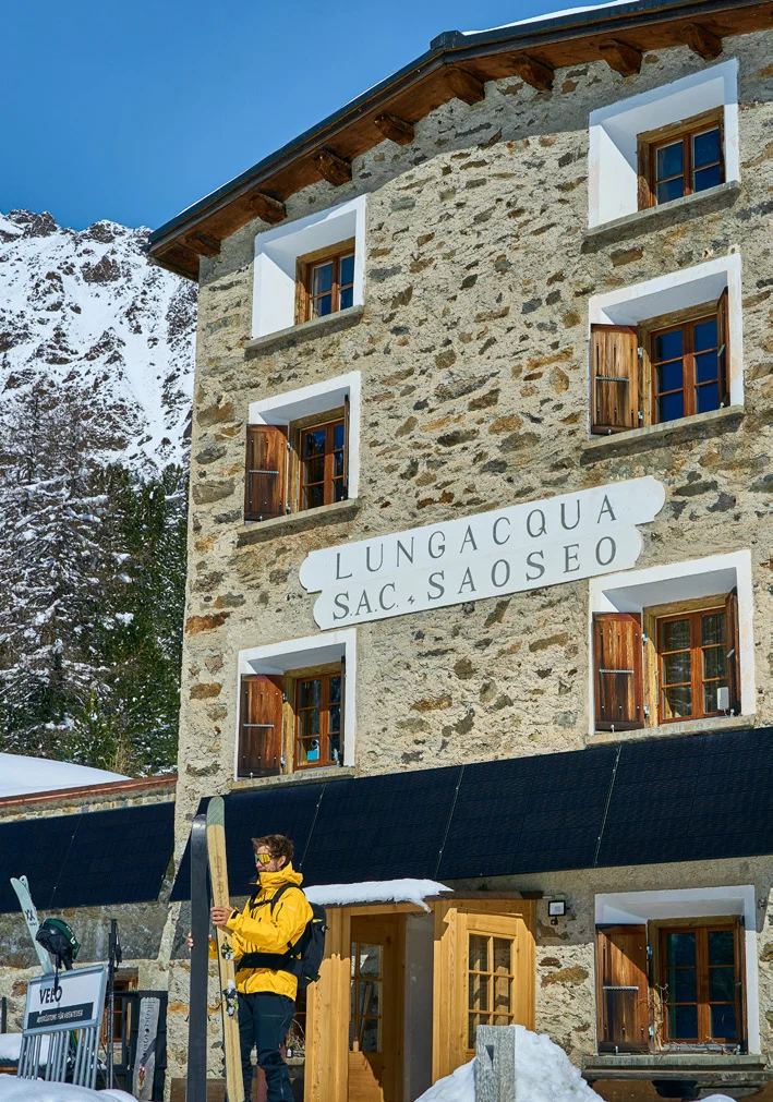 Le Rifugio Saoseo se situe près du lac du même nom à 1985 mètres d'altitude dans le Val di Campo, niché dans un paysage montagneux préservé entre le col de la Bernina et Poschiavo. Facilement accessible et entourée de sommets de plus de 3 000 mètres, cette cabane est un point de départ idéal pour les randonnées à ski. Les possibilités sont innombrables. Les expositions très variées permettent de trouver facilement des itinéraires adaptés aux conditions. La cabane dispose de 80 places (chambres à plusieurs lits et dortoirs). Ouverture en hiver : de Noël à Nouvel An puis de début février à fin avril.